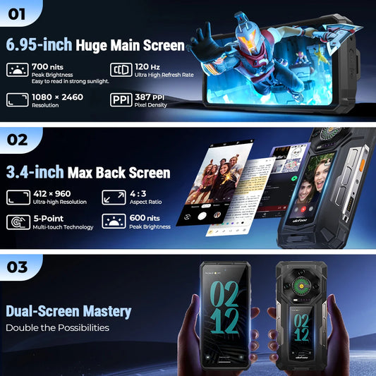 【World Premiere】Ulefone Armor 33 Pro 5G Rugged Phone 25500 mAh 512GB ROM 120Hz 6.59”3.4" Rear Screen NFC Android Smartphone