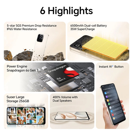 2025 New HONOR X7d 5G Smartphone Snapdragon 6s Gen 3 6.77'' TFT LCD Screen AI camera 6500mAh Supports 35W fast charging IP65