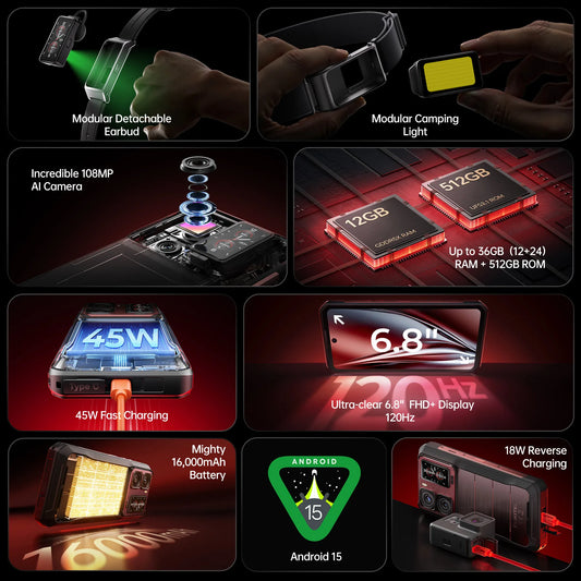 2025 NEW Oukitel WP300 Rugged Phone 6.78" FHD 120Hz Telephone Portable 36GB (12+24) GB+512GB 16000mAh Smartphone 5G Android 15