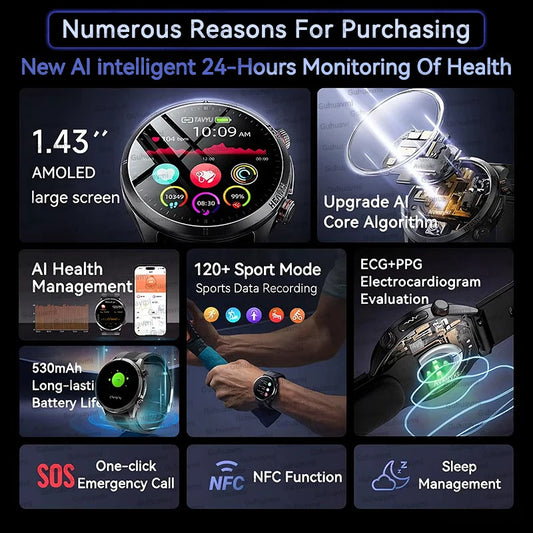 2026 New Upgrade Air Pump Blood Pressure Accurate Measure SmartWatch ECG Micro Physical Examination NFC Airbag Smart Watches Man