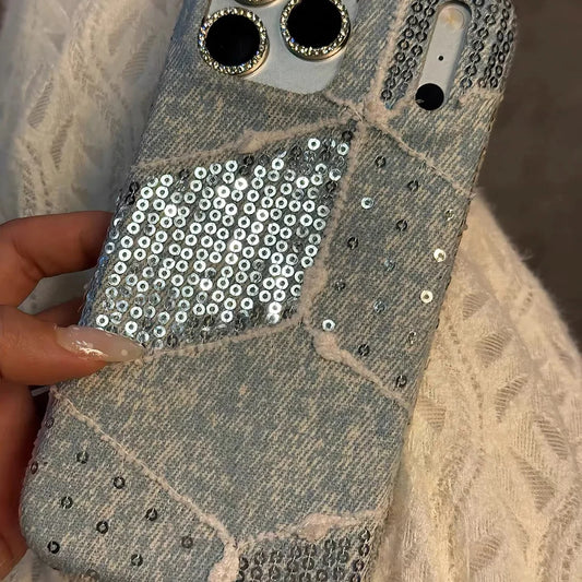 [Only explosion] sequined denim autumn and winter plush for iPhone17ProMax mobile phone case 16/14/15 Pro case 13/14Promax case